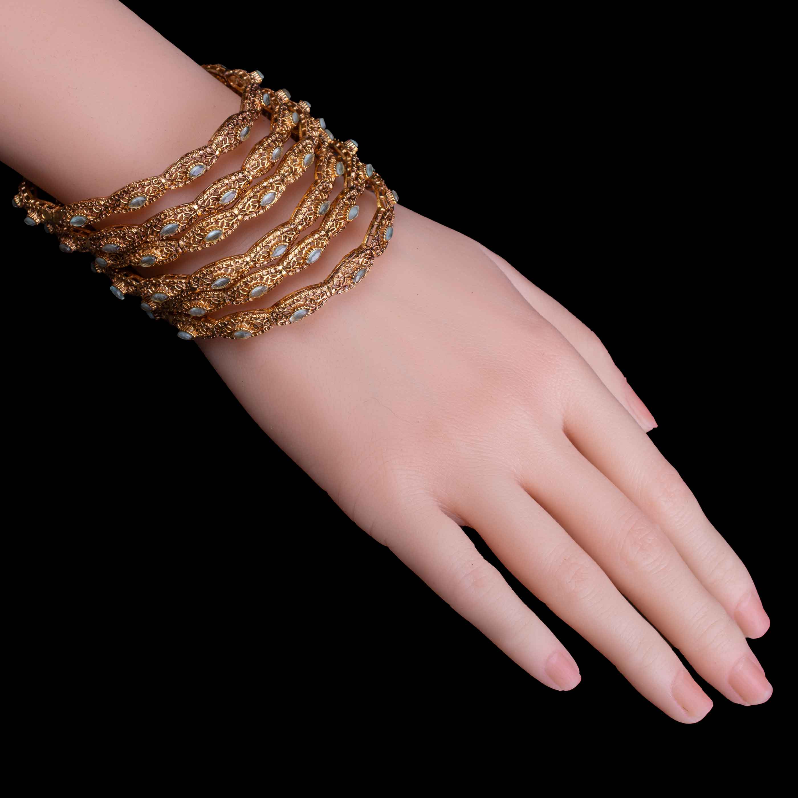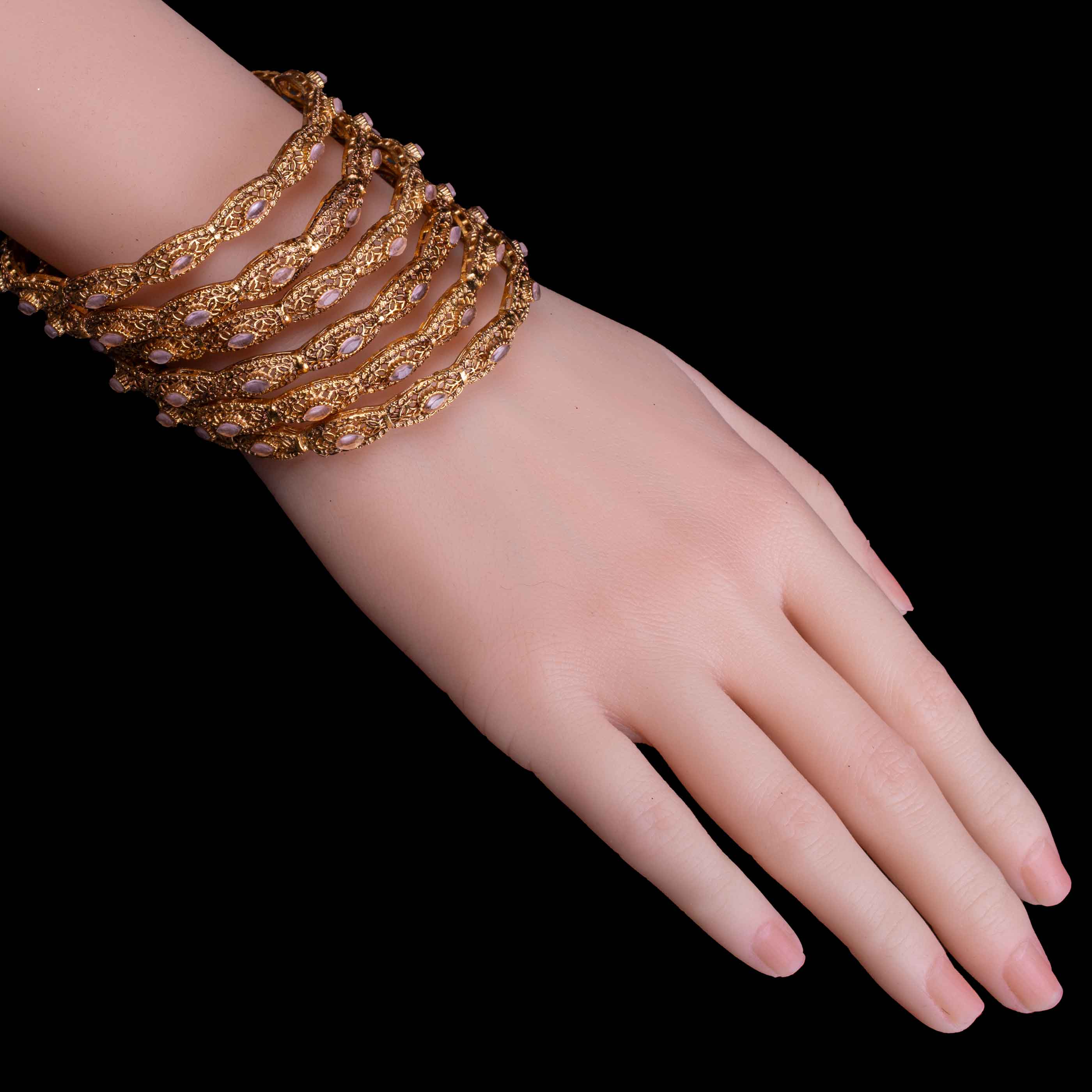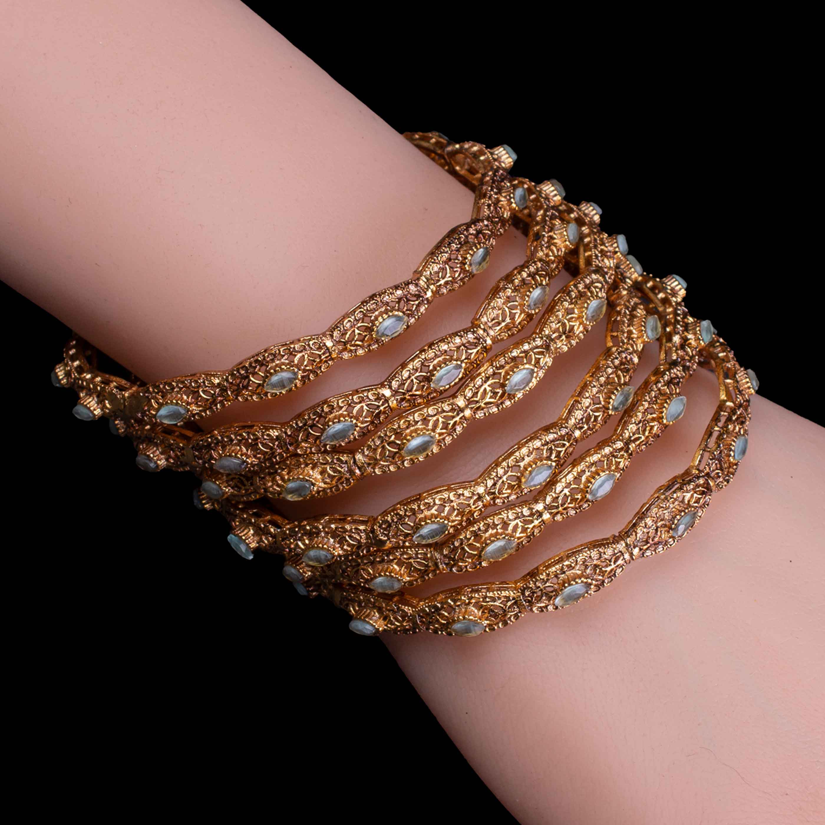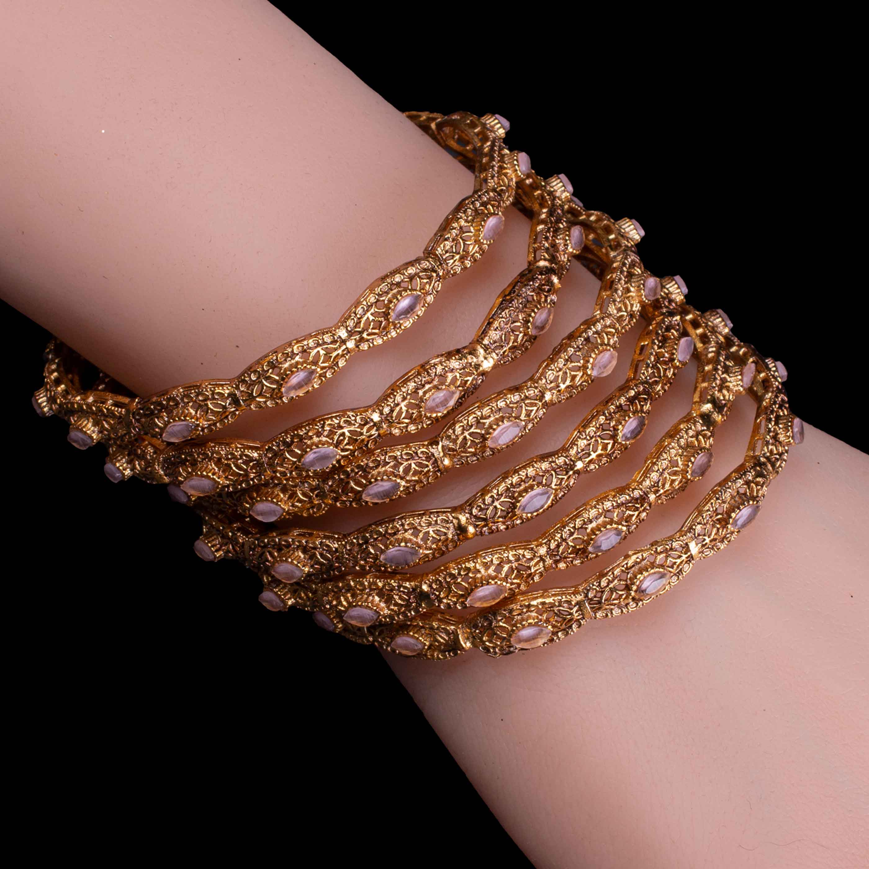 • Ancient White Stone: In these bangles embedded with fine white stones that give it timeless grace.
