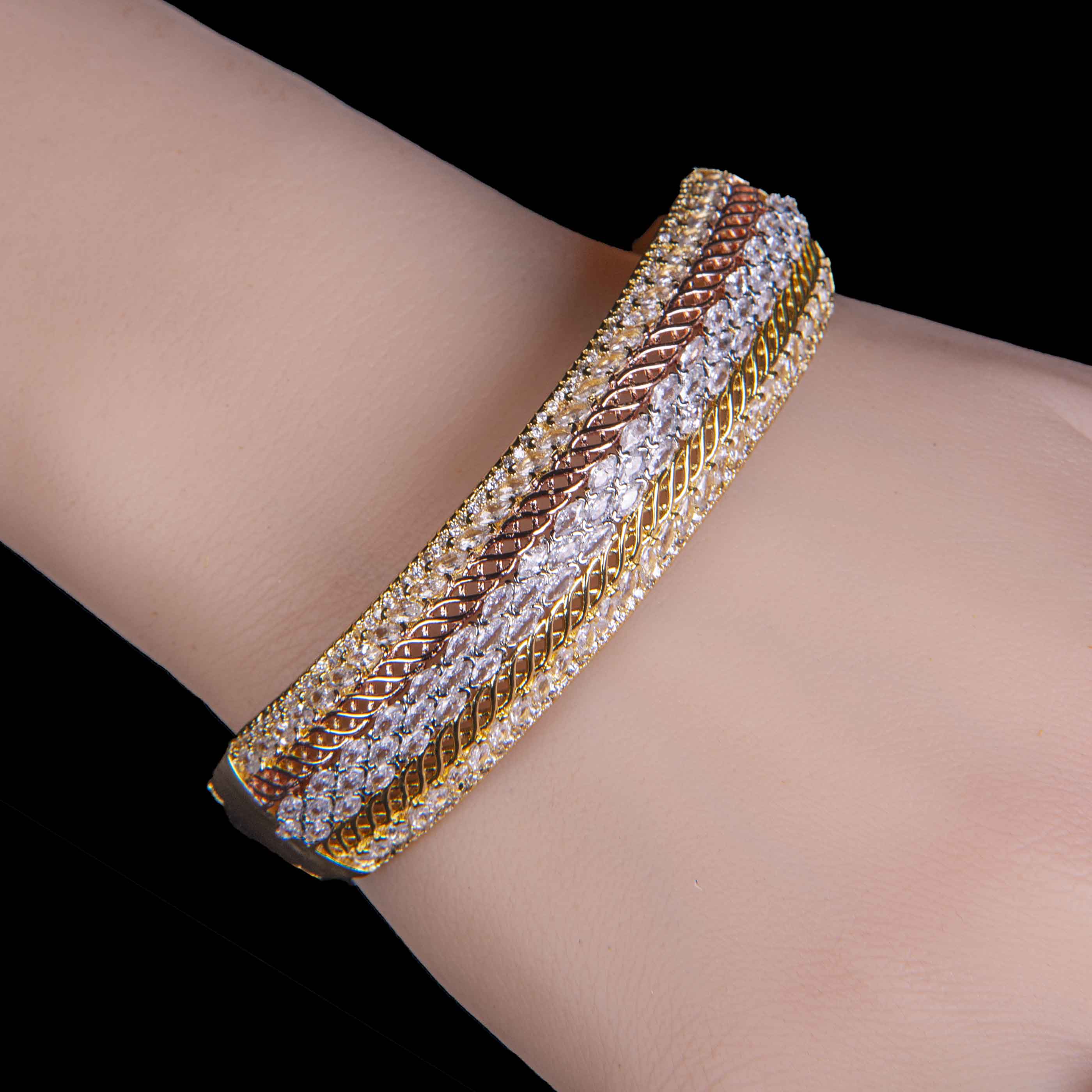 Elegant and refined 4-Pcs White Stone Antique Bangles Set. White Stone is perfect for anyone who loves classic accessories. The gold-plated sparkle paired with delicate white stones is suitable for festive clothes, weddings, or special meetings where your style stands out effortlessly.