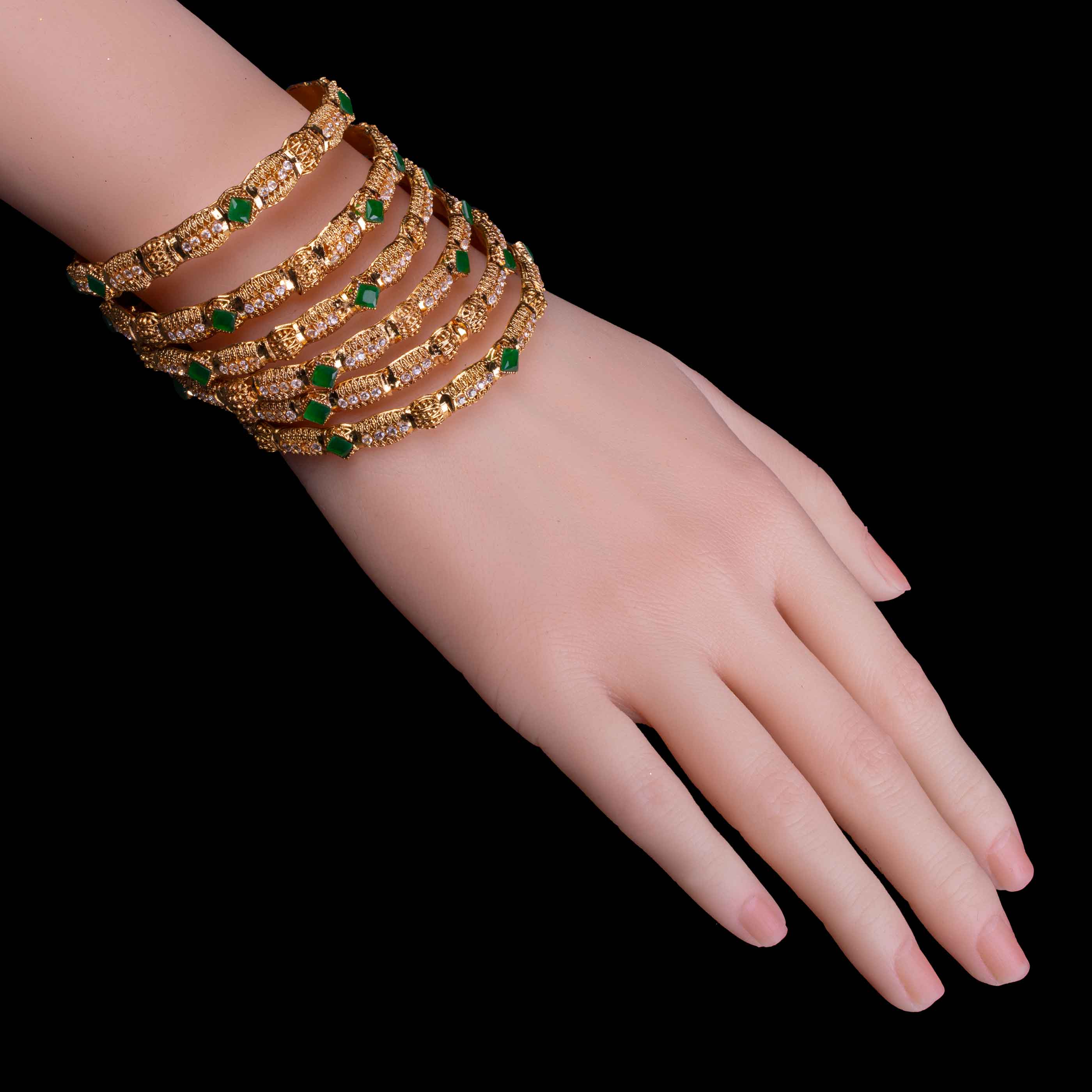 Elegant and refined 4-Pcs White Stone Antique Bangles Set. White Stone is perfect for anyone who loves classic accessories. The gold-plated sparkle paired with delicate white stones is suitable for festive clothes, weddings, or special meetings where your style stands out effortlessly.