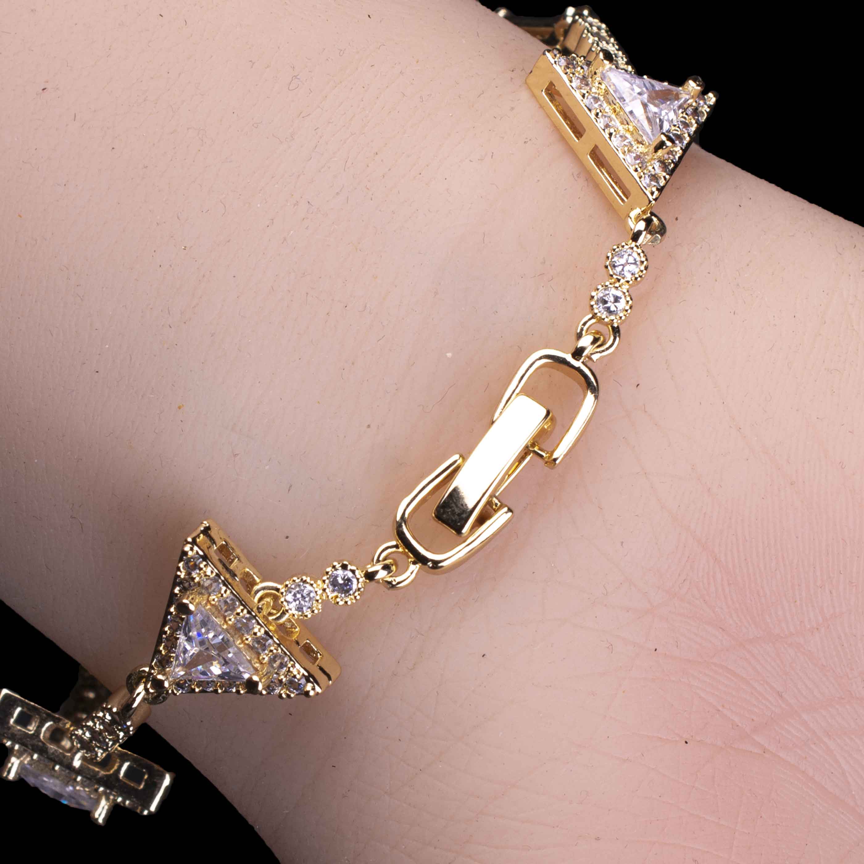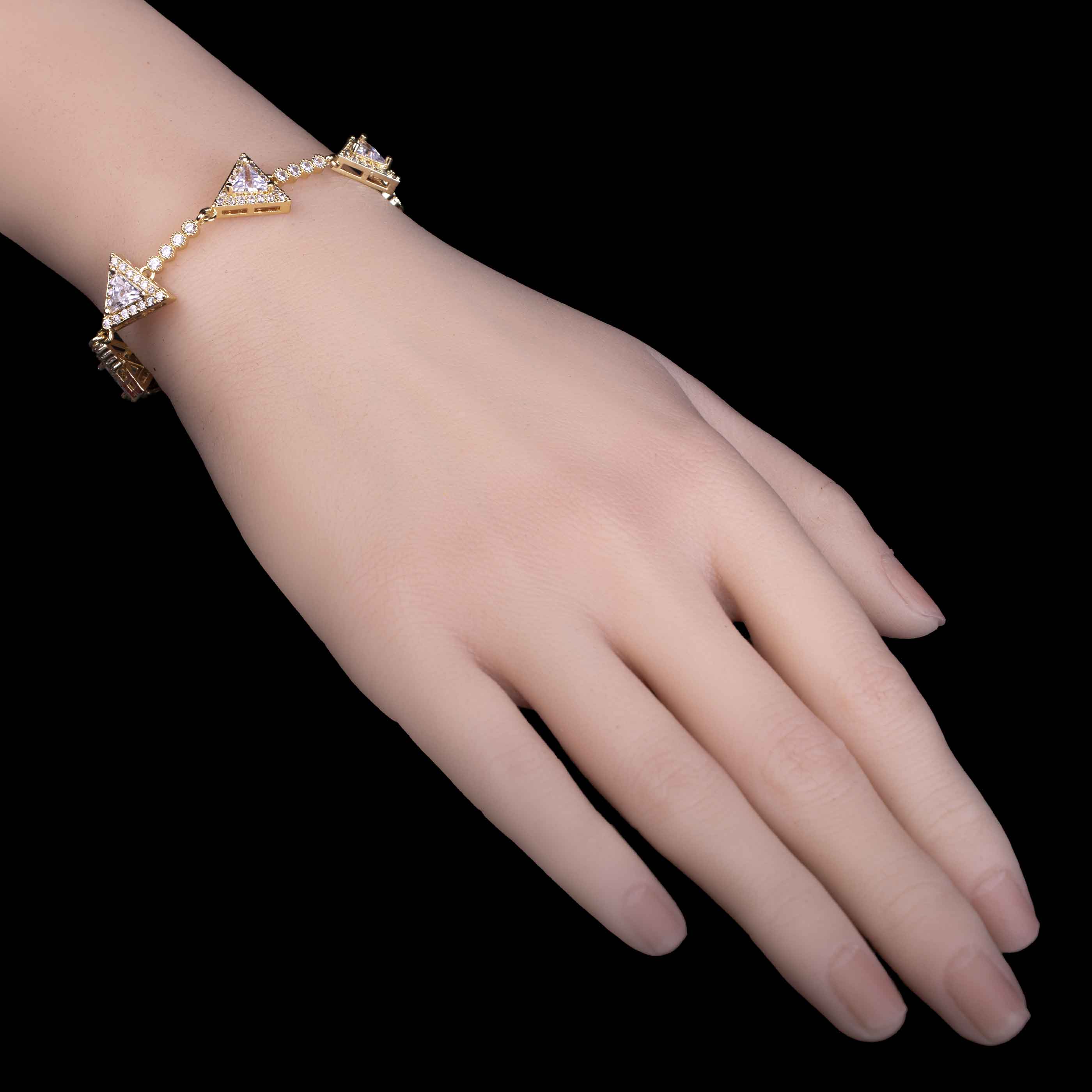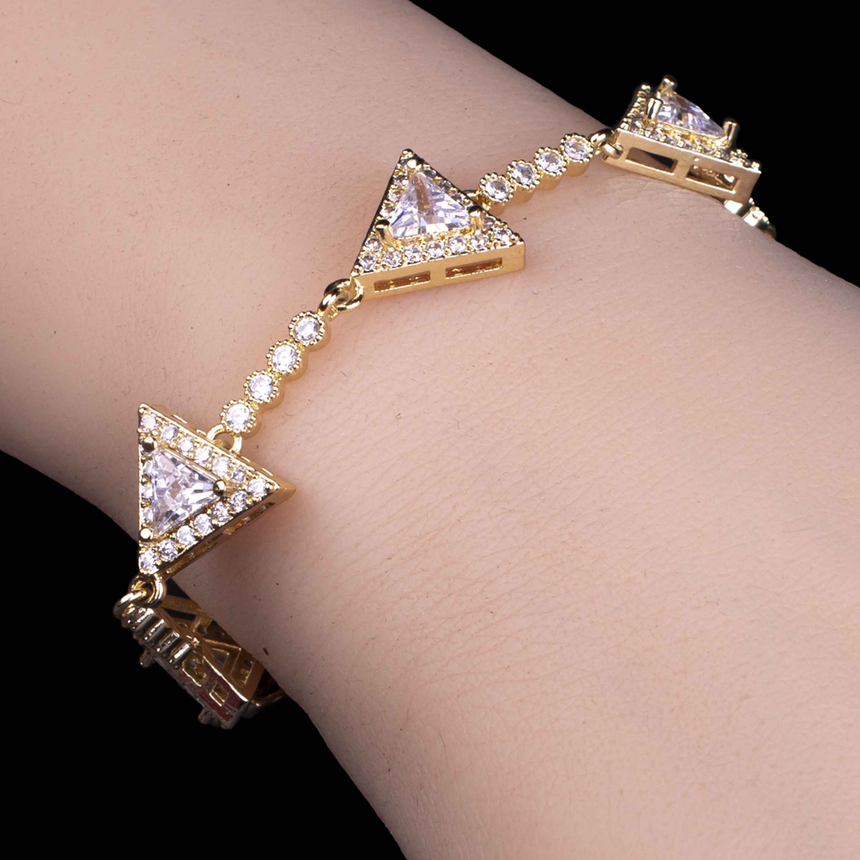 Golden Geometric Triangle Zircon Bracelet