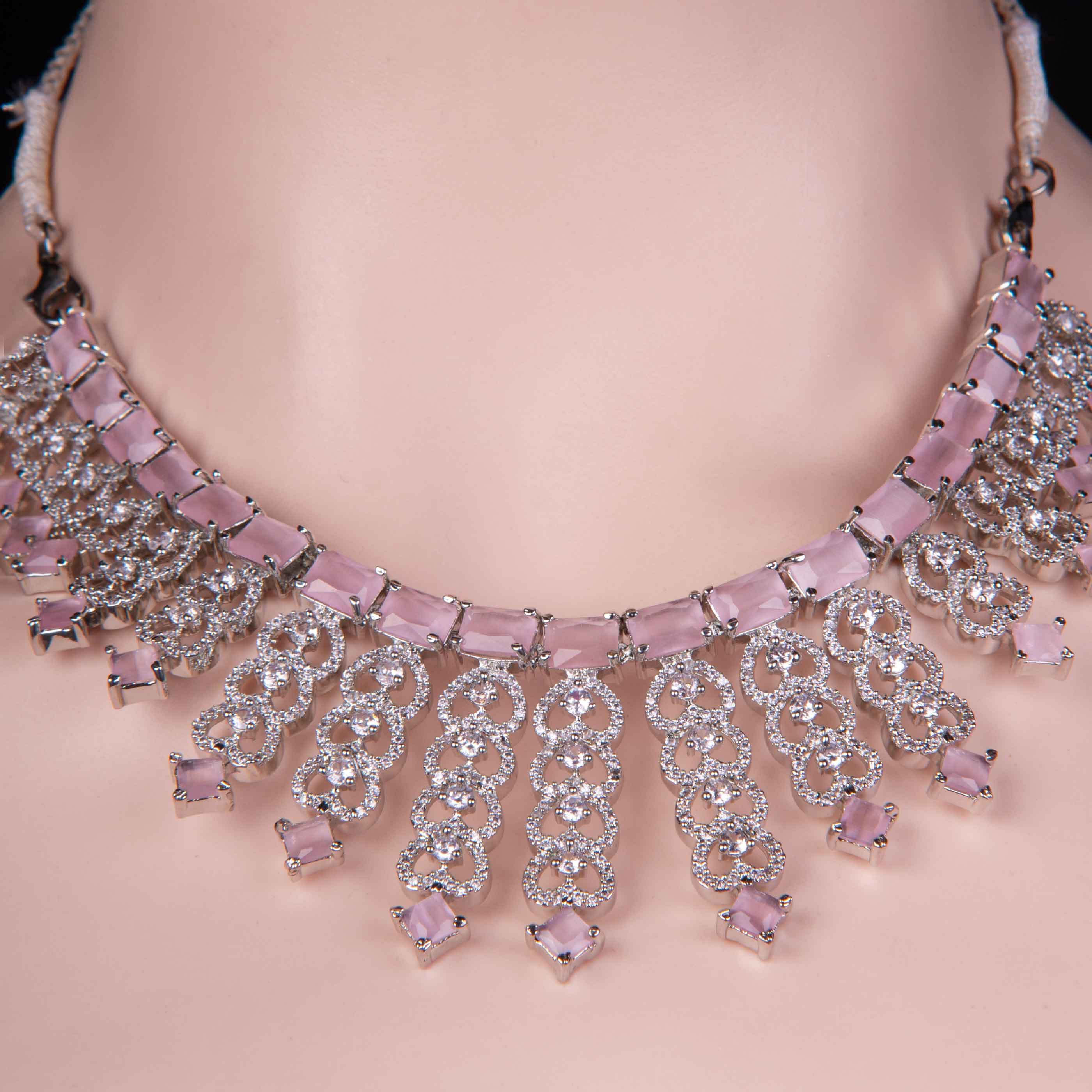 Pink Cubic Zircon Silver Necklace Set