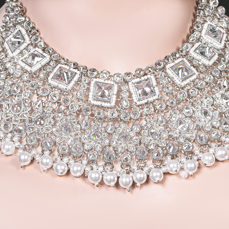 Tags: bridal choker, silver jewelry, kundan style, square stone set, dulhan set, bridal accessories, artificial necklace